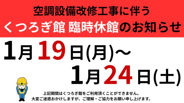 空調設備改修工事に伴う一部施設休館のお知らせ