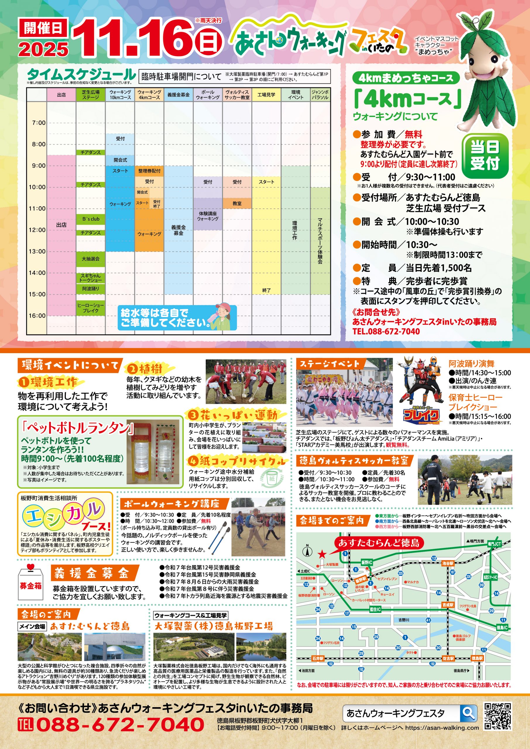 美しい自然を楽しむウォーキング、バラエティ豊かな楽しいステージ、一日を通して板野町を満喫していただけます。