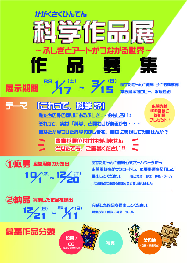 作品をあすたむらんど徳島子ども科学館まで提出してください。