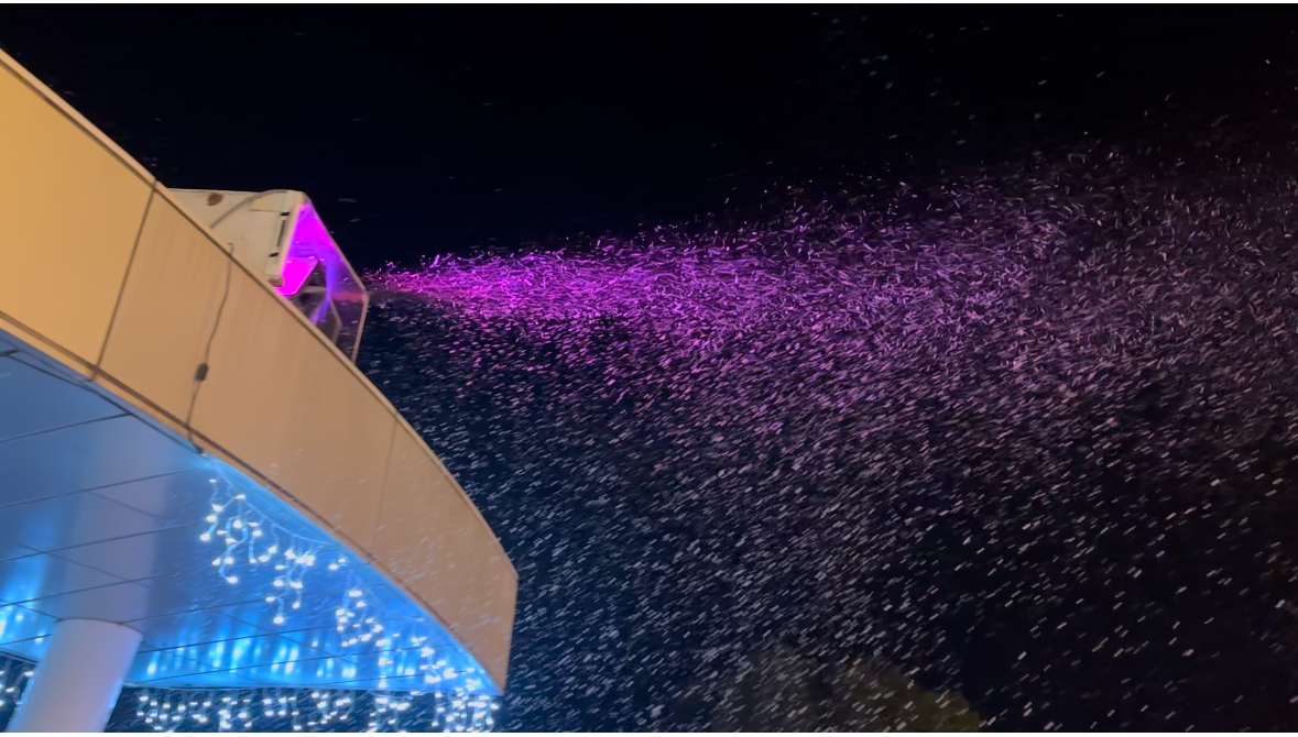 雪に見立てた泡が音楽と共に降り注ぐ特別な5分間!
