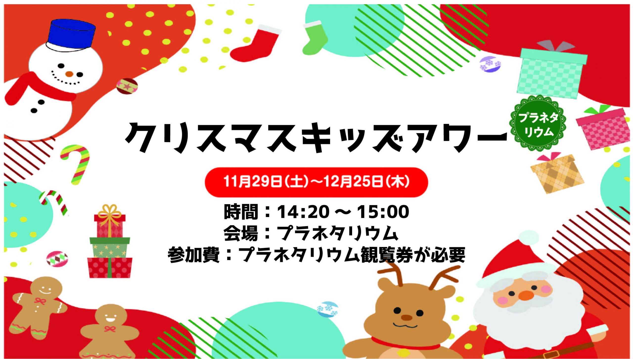 クリスマスキッズアワー サンタさんのヒミツがわかるかも!?プラネタリウムでサンタさんのおはなしと星空を楽しもう!🎅 基本情報 開催日 2025/11/29(土)~2025/12/25(木) 開催時間 14:20~15:00 開催場所 プラネタリウム 参加費・応募など プラネタリウム観覧券が必要 ■対 象:幼児~小学校低学年とその保護者 前のイベントを見る 一覧 次のイベントを見る