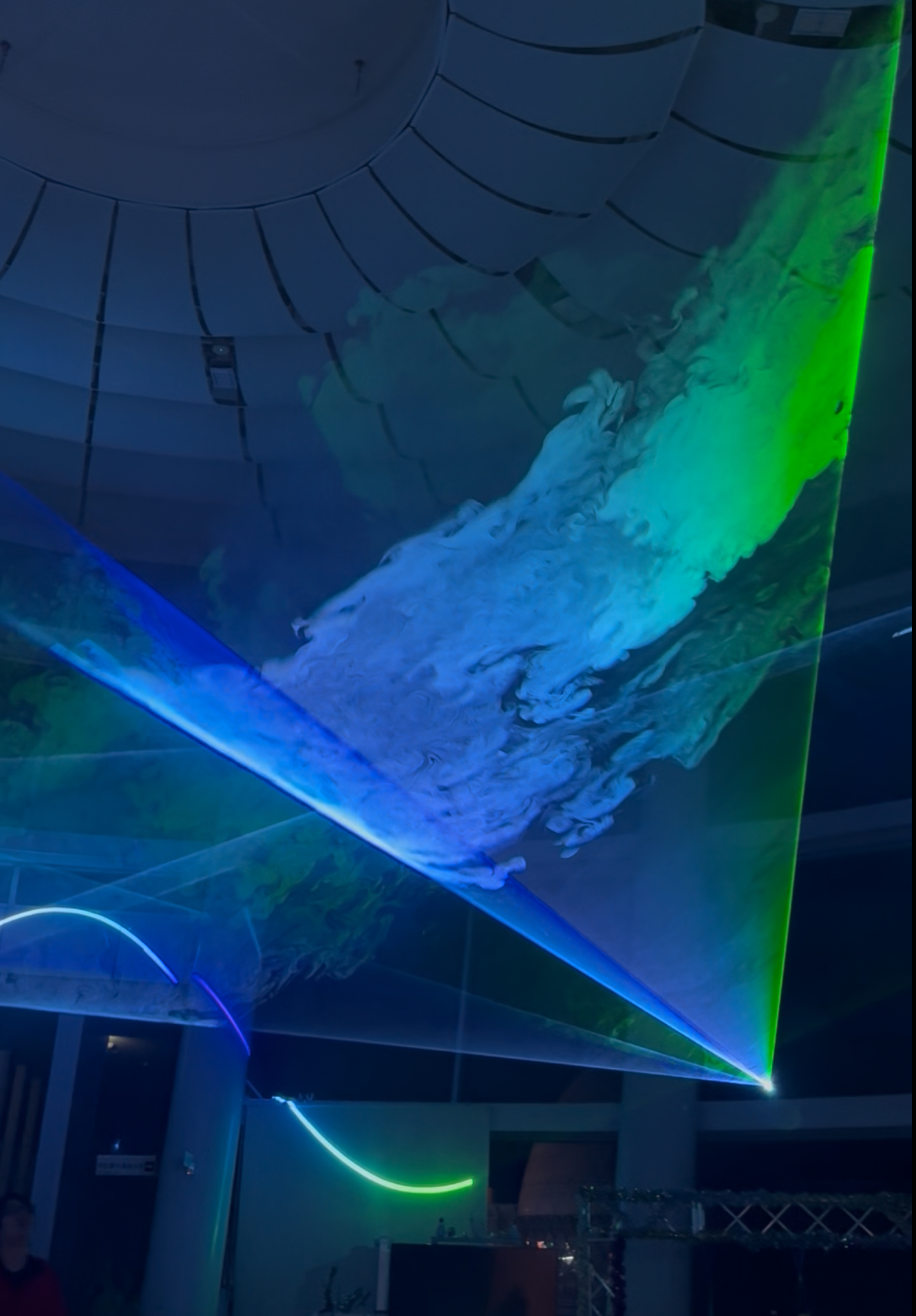 スモークマシンとレーザーによる光の演出でオーロラを再現し