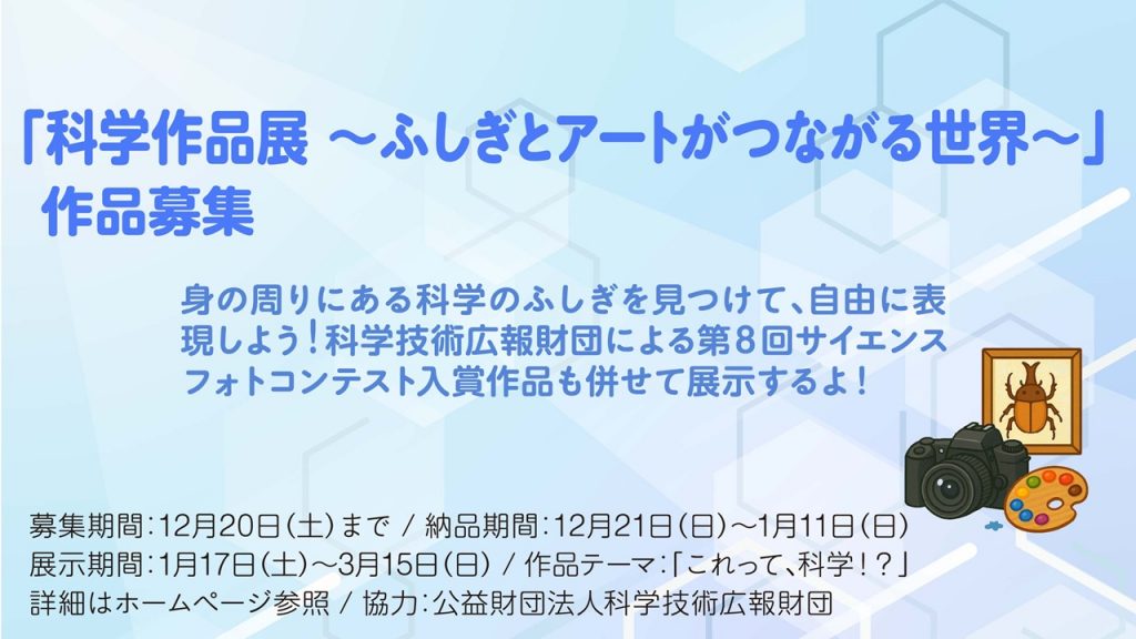 「科学作品展~ふしぎとアートがつながる世界~」作品募集!!