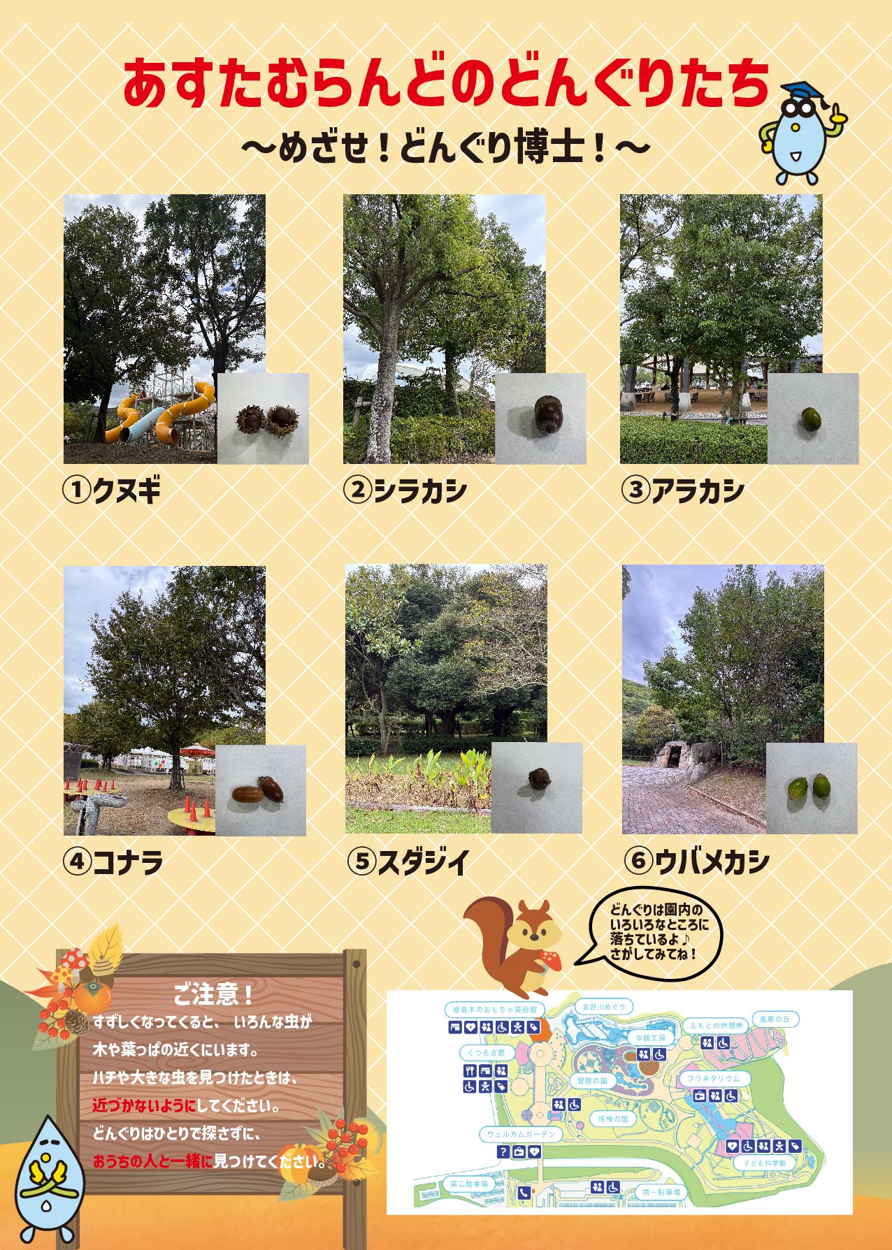 あすたむらんど徳島には6種類『どんぐり』があります。